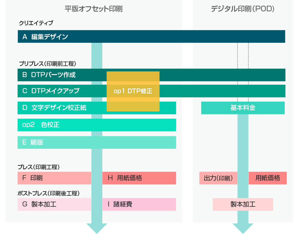 ● 印刷物製作工程ごとに必要な料金を積み上げていく